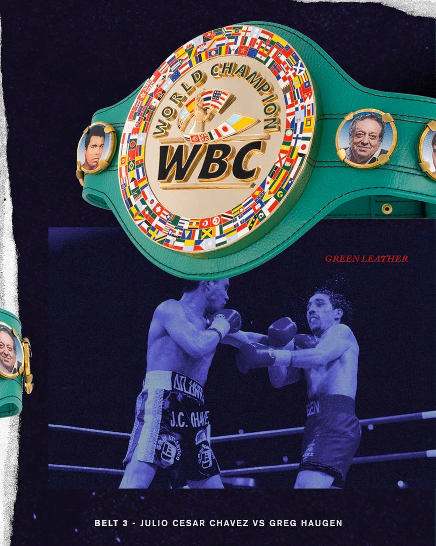 The original and classic design of the iconic green and gold WBC belt, exclusive “WBC Replica Championship Belt”, now presented in the new collection “Historic Fights”.